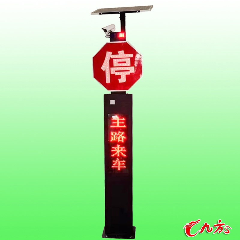 (3)主道设备与辅道发光警示功能:系统检测到有车辆通过该区域时,自动点亮主道与辅道标识与语音播报功能,提示和引导车辆减速安全行驶;
